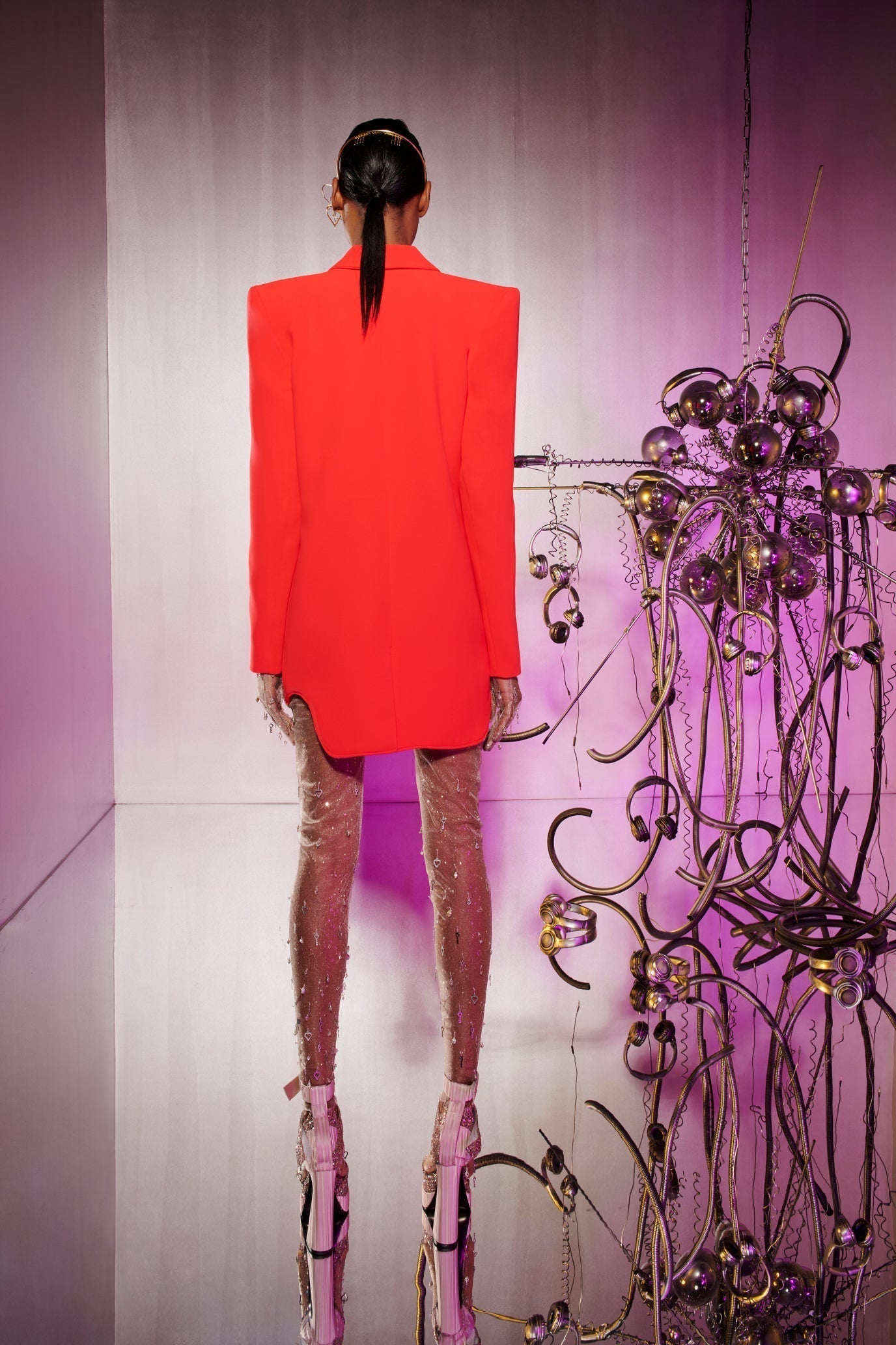 Oversized dress jacket with A-symmetrical hem embellished with heart-shaped knotted ropes.