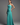 This strapless evening gown is crafted in a rich turquoise crepe with soft draping across the bodice and waist. Sequined floral appliqués at the neckline and hip add sparkle and dimension. The fitted bodice flows into a floor-length skirt with a subtle train at the back.